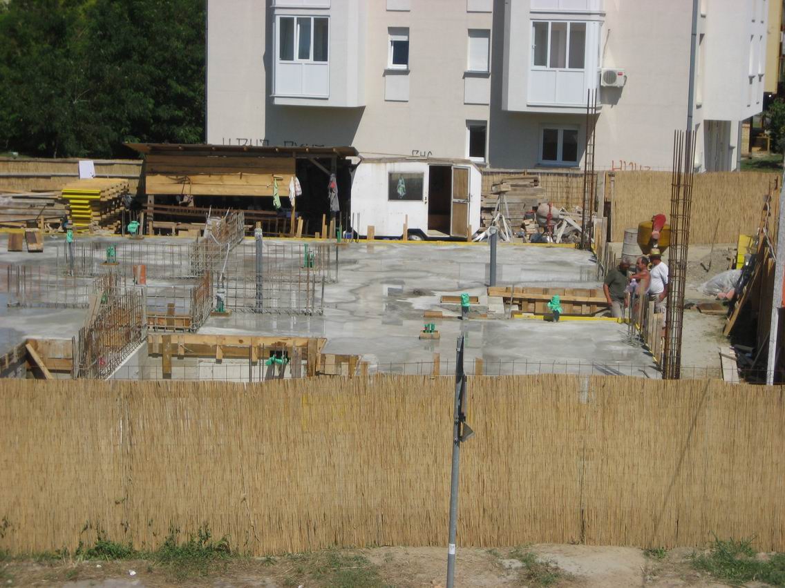Danas, 12.07.2011. god. izbetonirana je nulta ploča (ploča prizemlja). Za betoniranje ove ploče utrošeno je ukupno 49 m3 betona. Beton je MB 30, pumpani sa 4 frakcije.