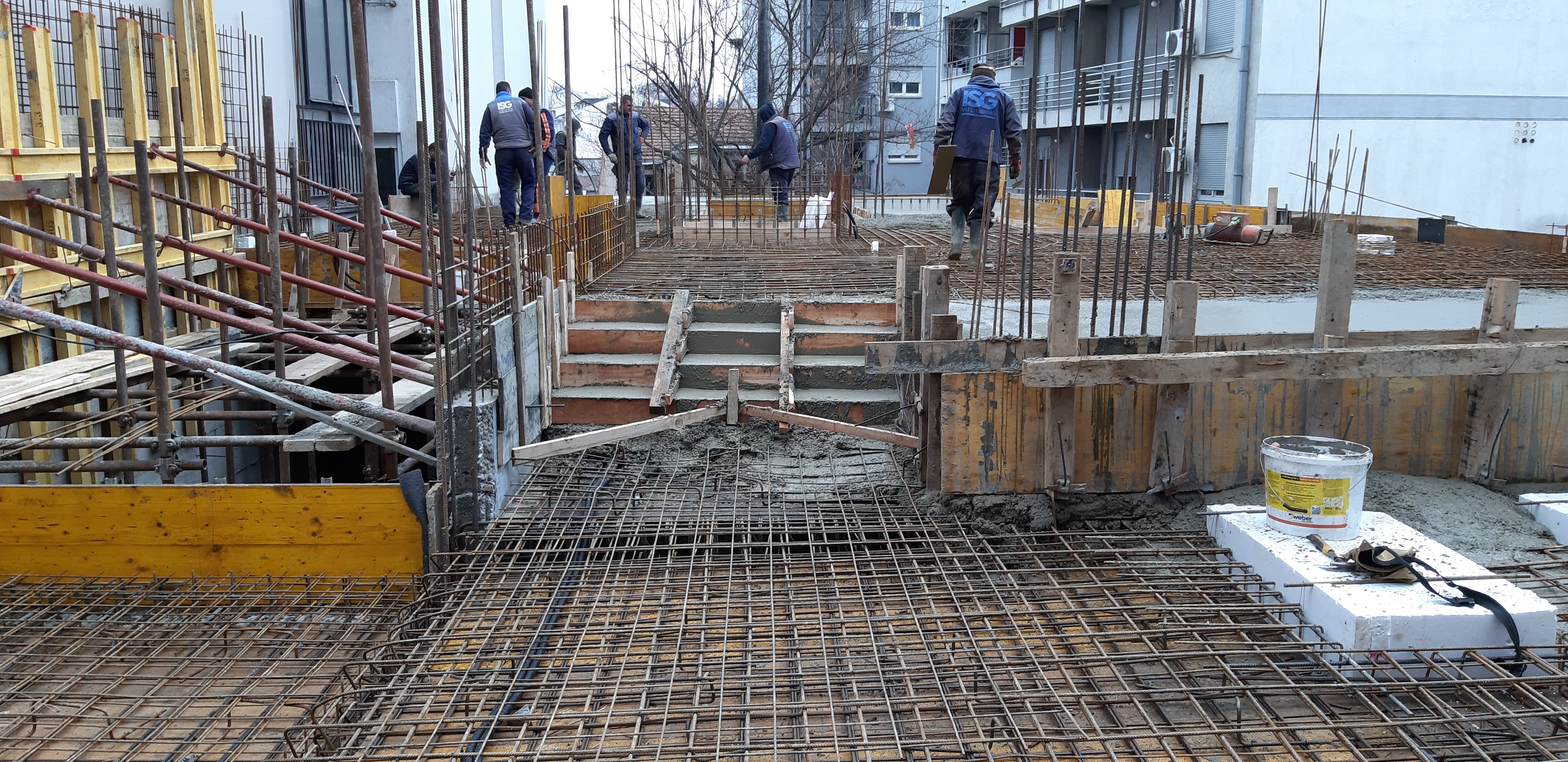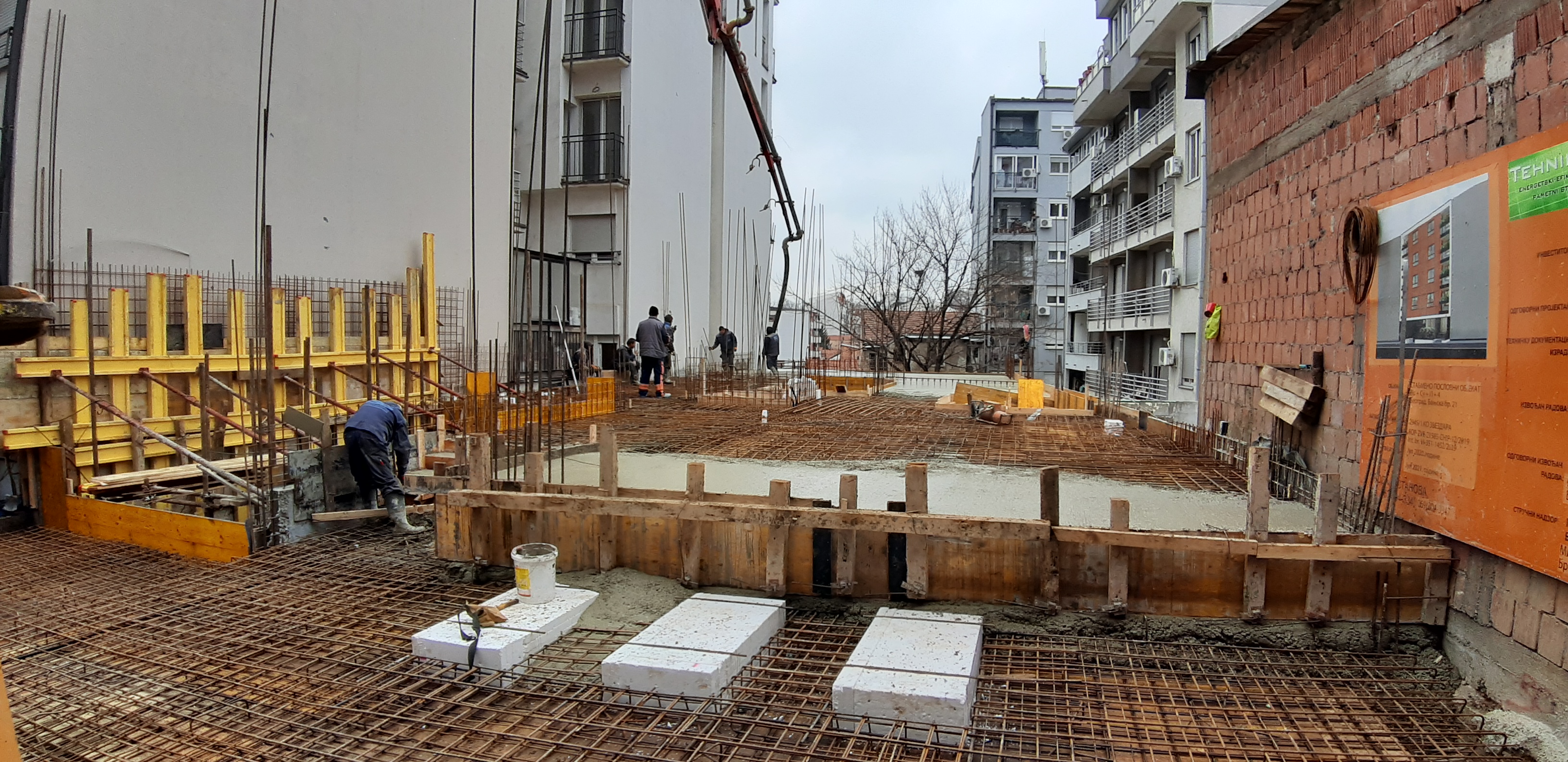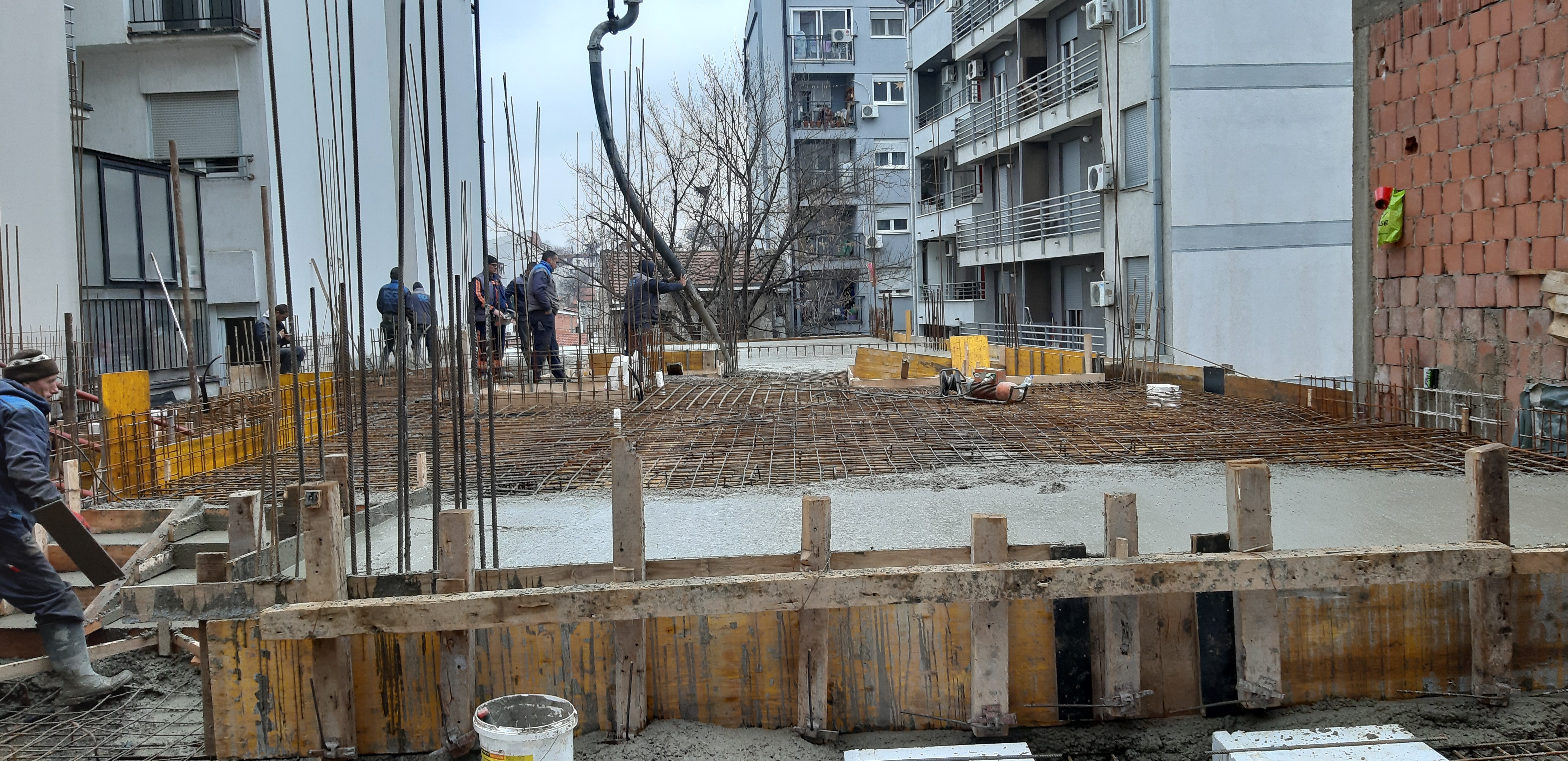 U toku je betoniranje ploče prizemlja.