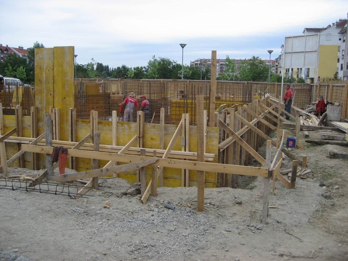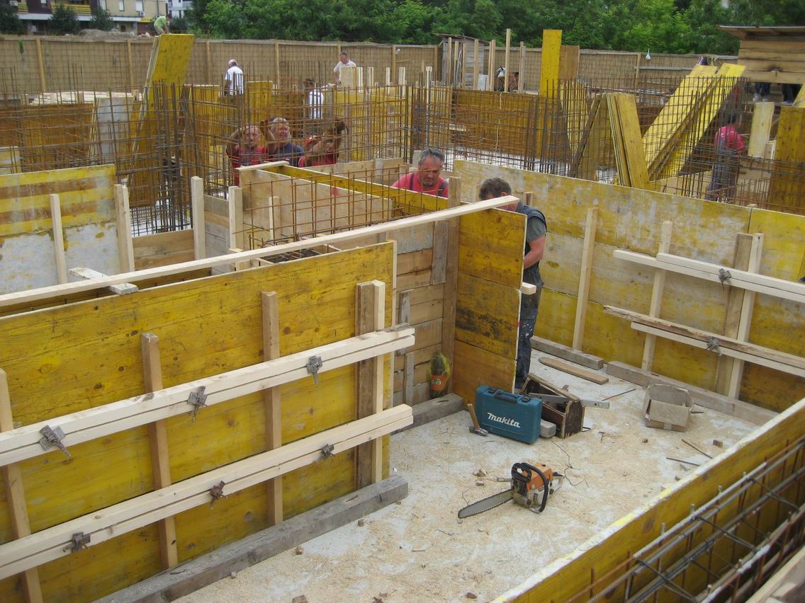 Armiranje i postavljanje oplate za zidove između temeljne ploče i nulte ploče