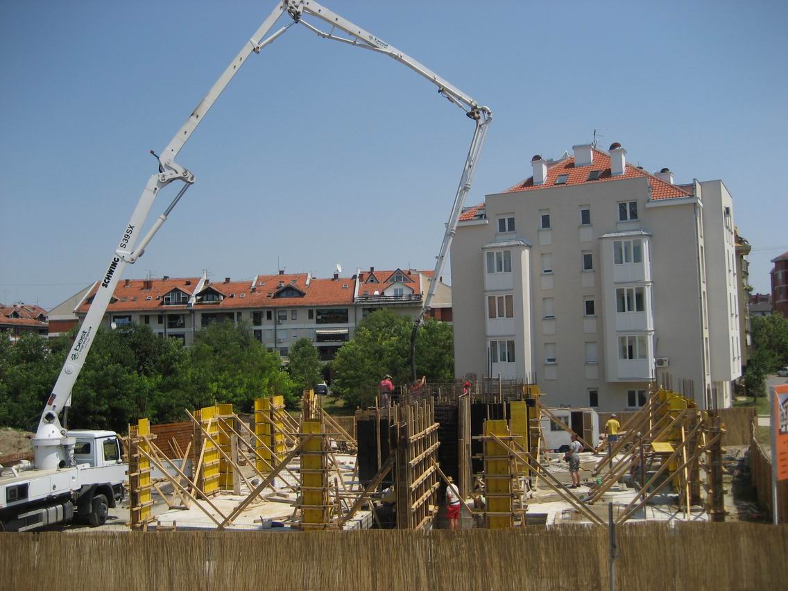 Betoniranje stubova prizemlja pomoću pumpe za beton
