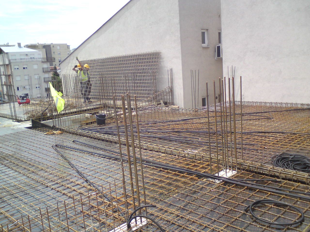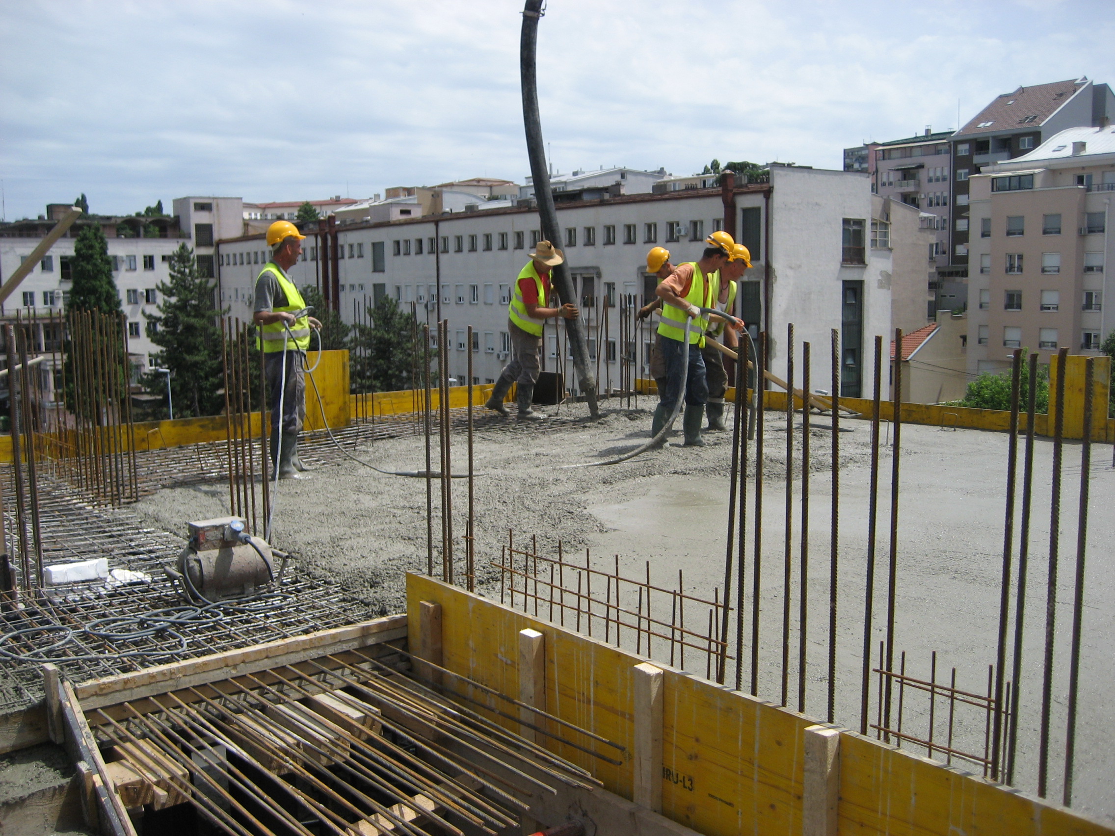 Concrete slab floor of an attic floor