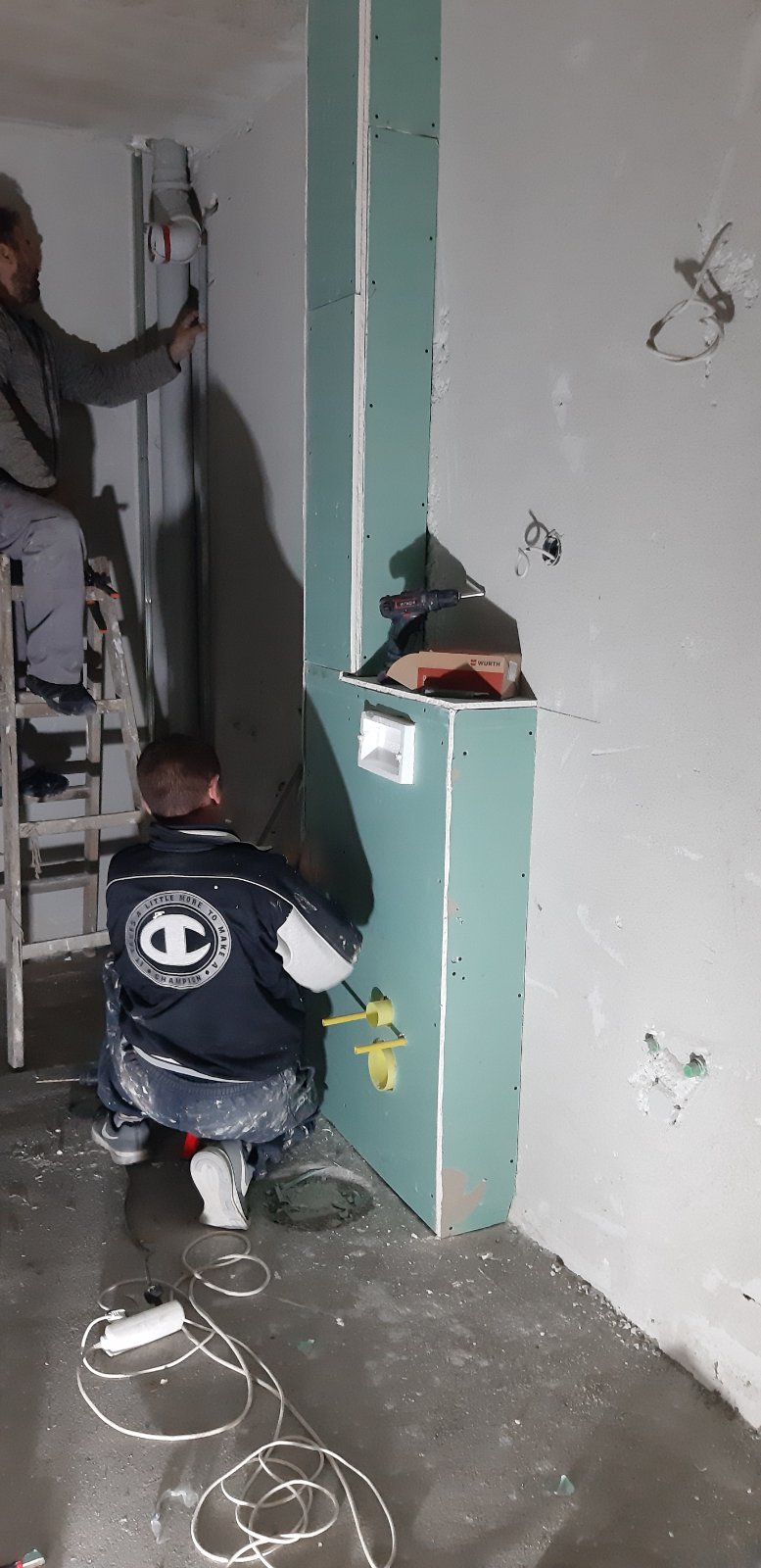 U toku su gipsarski radovi, oblaganje ugradnih vodokotlića i vertikala.