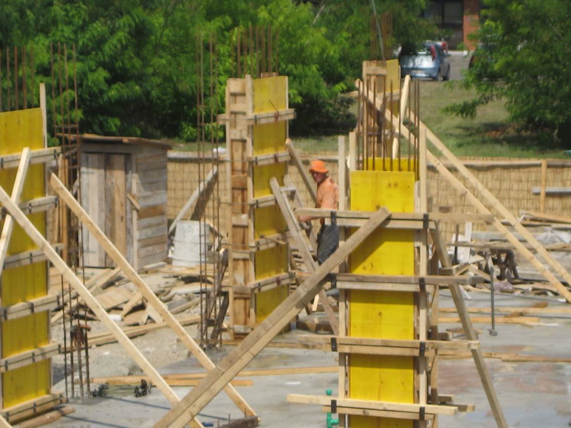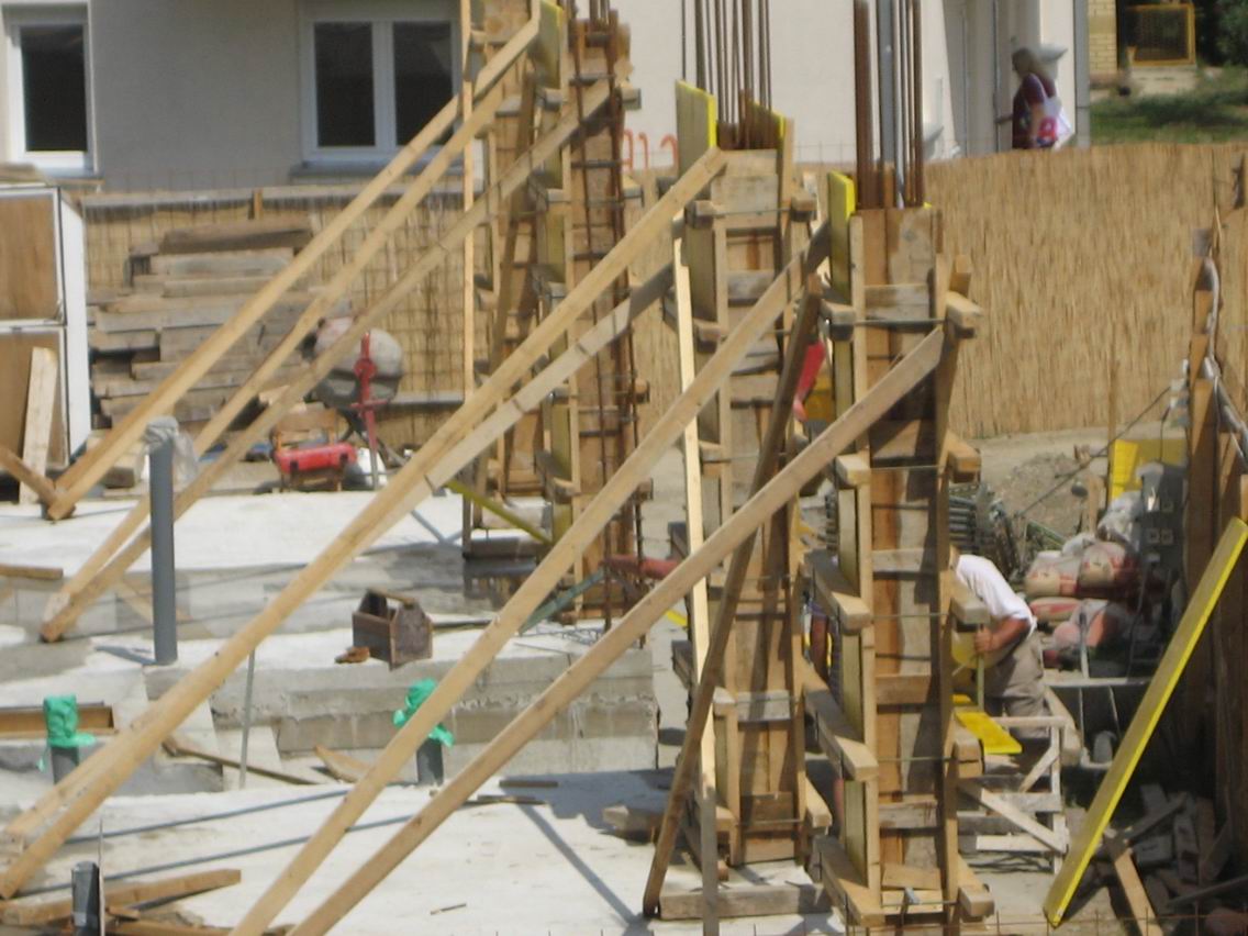 Installation of formwork for pillars and ground foundation