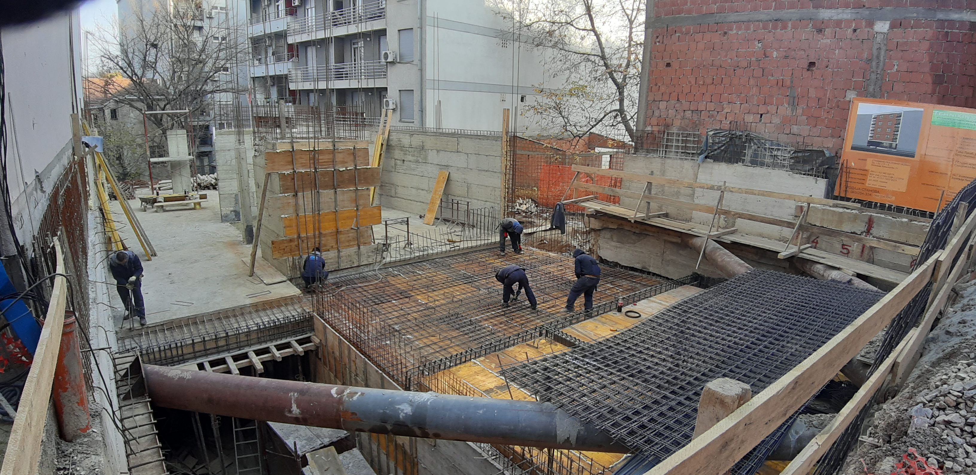 U toku je postavljanje oplate i armature za ploču suterena.